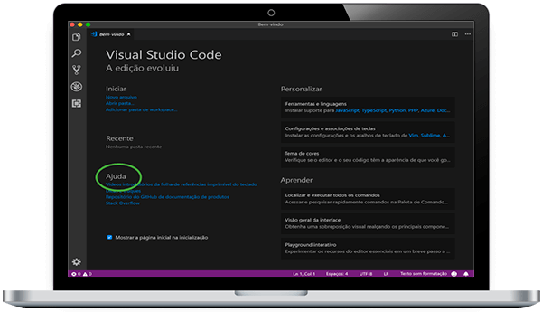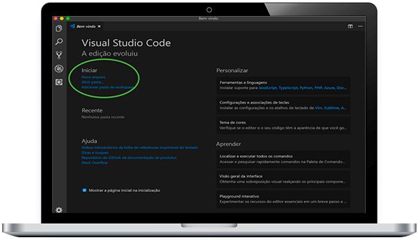 Quando você abre o Visual Studio Code, a página inicial é aberta.
