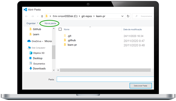 Ao abrir uma pasta, o sistema operacional fornece um botão para criar uma Nova Pasta.