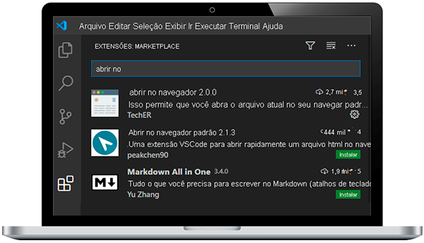 Você pode estender a funcionalidade do Visual Studio Code usando o Marketplace de extensões.